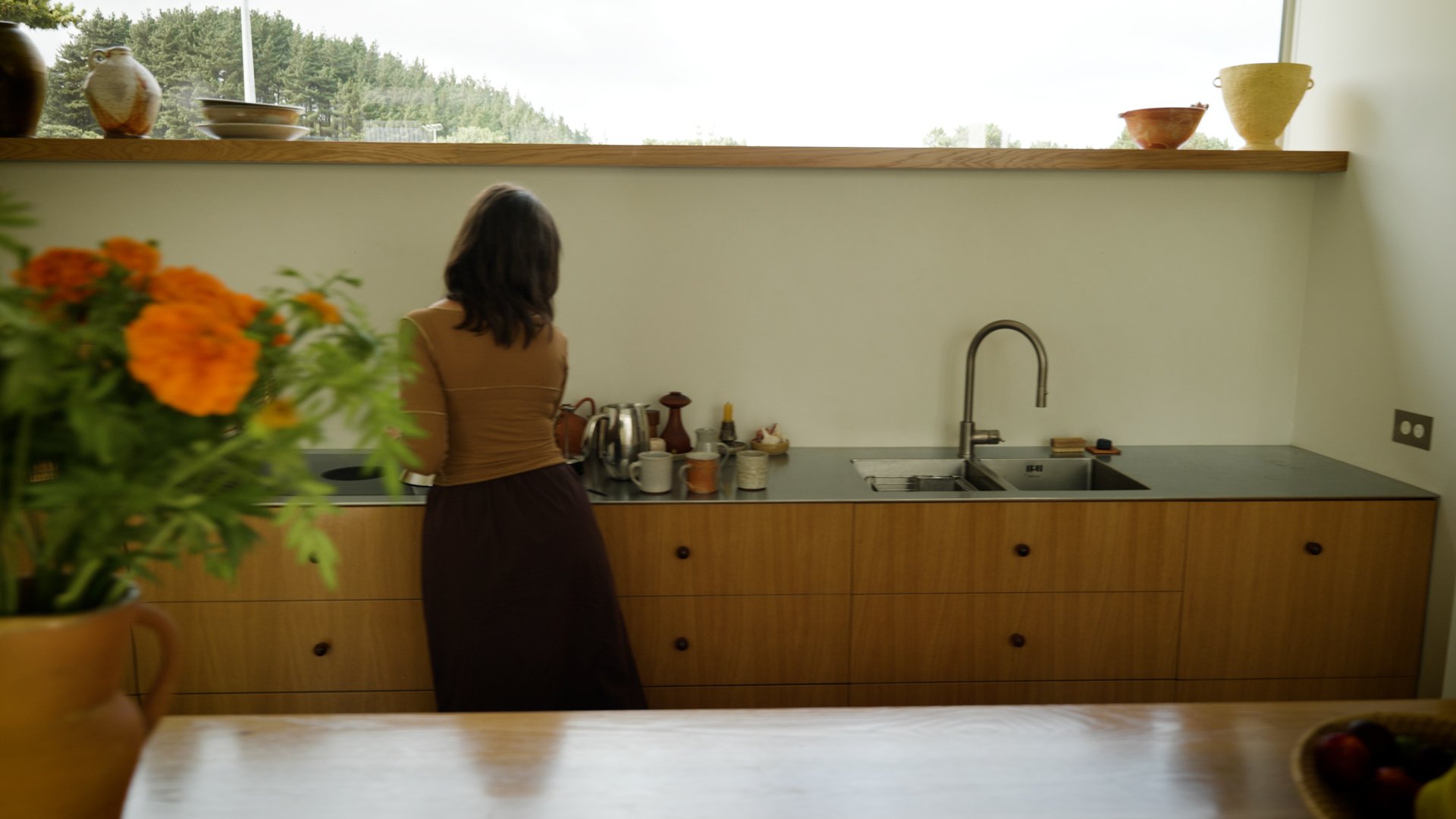 The kitchen island serves as a central hub for daily rituals.